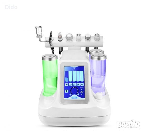 Козметичен апарат за професионална употреба, който съчетава 6 различни функции спомагащи за почистване, пилинг, подмладяване, премахване на акне, пигментация и белези.