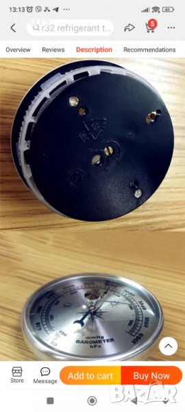 Този анероиден барометър отчита в единици mm живачен стълб(Hg )или hPa (хектопаскал).