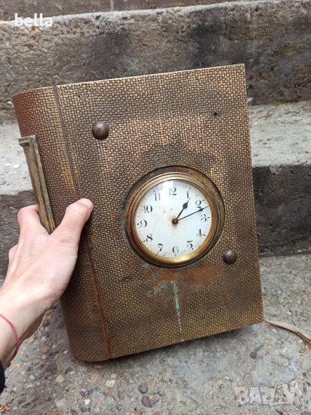 Масивен стар бронзов часовник има нужда от лека козметична реставрация.Кутията на часовника е книга тежи 6 кг липсват 2 декоративни топчета отпред ,часовника е работещ не е профилактиран и липсва отпред ринга който да го държи стегнат да не пада .Цена 400 лв -намален на 350 лв