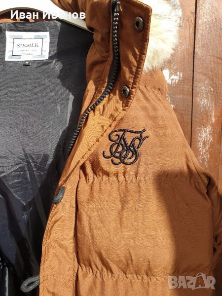 Sik Silk лъскава пуф парка в светло каки. Лека, мека на допир подплатена материя. Цялостно закопчаване с цип отпред, което е скрито от каишка с копче. Подплатена качулка с тапицерия от изкуствена кожа. Два големи долни предни джоба. Джоб на ръкава с цип и копче. Лого на Sik Silk, бродирано на гърдите. Маншети на ръкавите с марка Sik Silk. Вътрешен регулатор на талията. Един вътрешен джоб. Редовна форма. Корпус и подплата: 100% полиестер. Козина на качулка: 89% акрил, 11% модакрил.