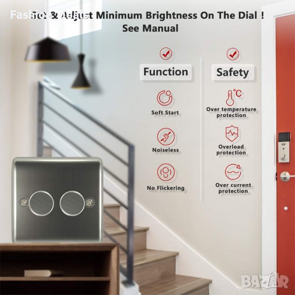Работи с максимум 100 вата димируеми LED крушки или 150 вата крушки с нажежаема жичка