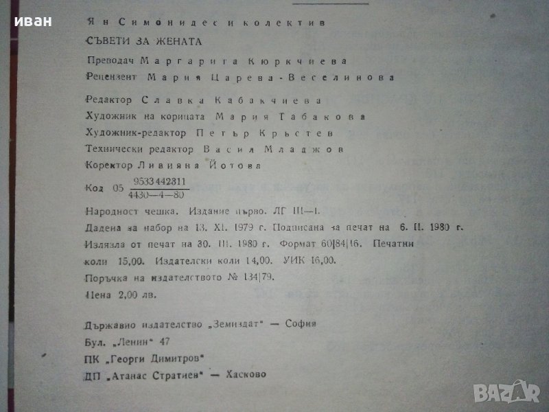 Съвети за Жената - Ян Симонидес - 1980г.  → Обява 39368616
