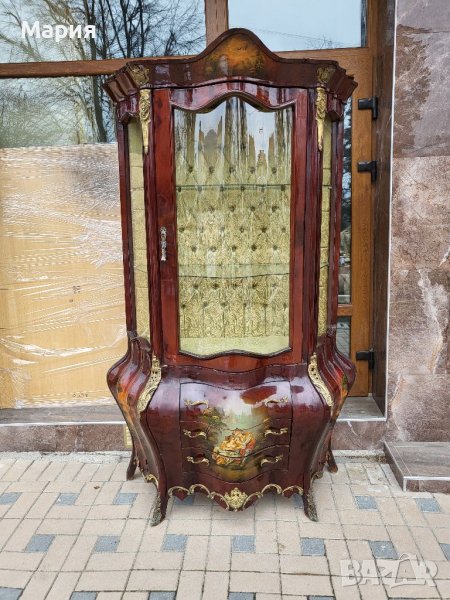Уникално красива барокова витрина. Дърво, ръчно рисувана .меден обков.