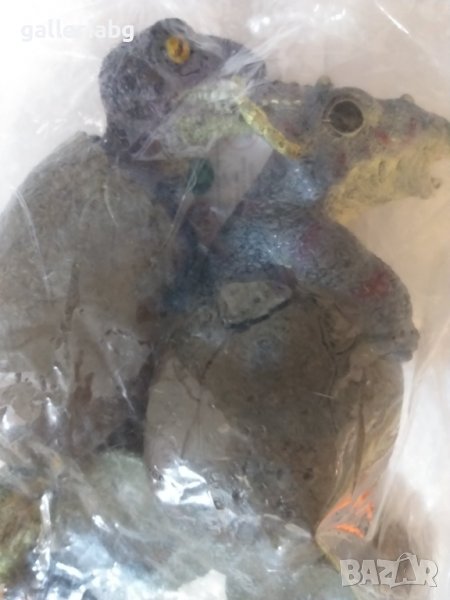 Интересен комплект на динозавърчета в яйце все още не излюпили се напълно с поставки.