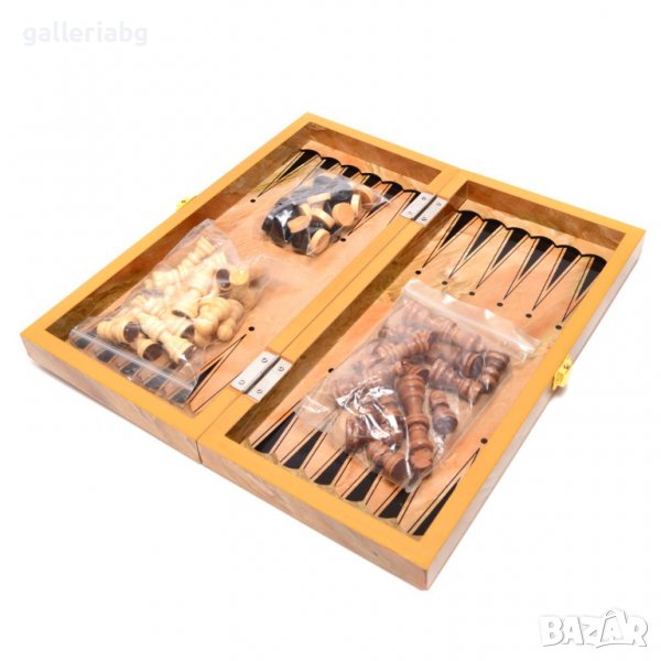 шах и табла в дървена кутия.