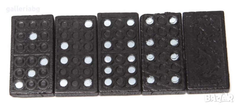 Класическо домино с 28 броя плочки в дървена кутия. Дължина - 15 см.