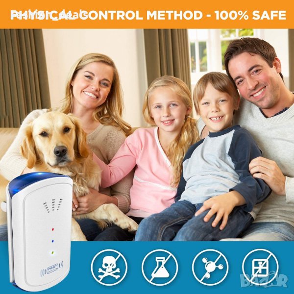Отблъсква чрез непрекъсната променлива честота на ултразвукови и електромагнитни вълни, които са 100% безопасни и безвредни за хора, деца и домашни любимци