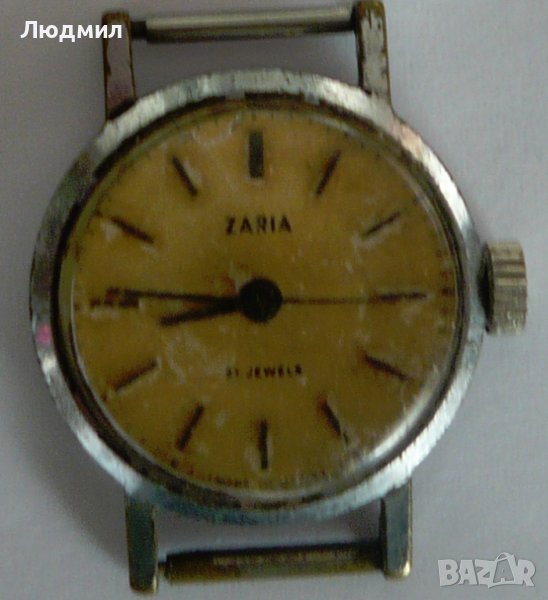 Продавам Стар механичен часовник ZARIA, произведен в СССР. Механизмът му е с 21 рубинени камъка. Сериен номер 109722. Има