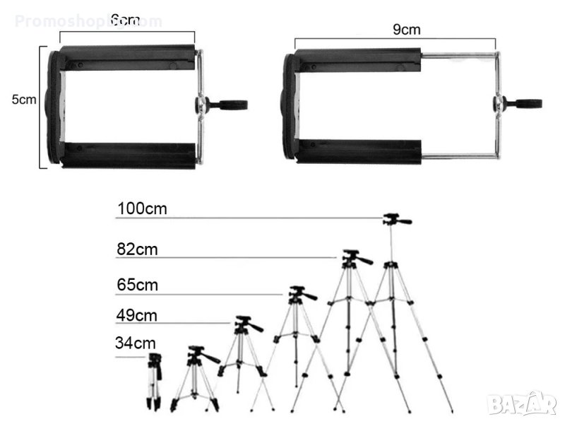 Широко приложение: стандартен монтажен винт 1/4" и държач за смартфон позволяват използване с камери, цифрови фотоапарати и телефони.