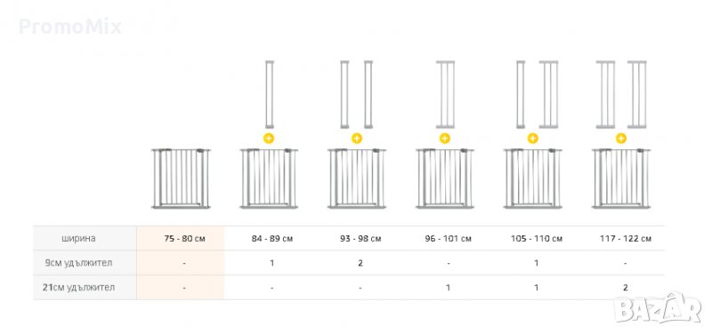Защитната преграда е с височина 77 сантиметра и е подходяща за монтаж на каса и врата с размери от 75 до 80 сантиметра.