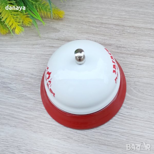 Метален настолен звънец със забавни надписи “Пожар” от едната страна и “Загаси с бира” на другата страна. Оригинален подарък за любителите на пенливата напитка бира.
