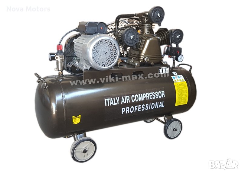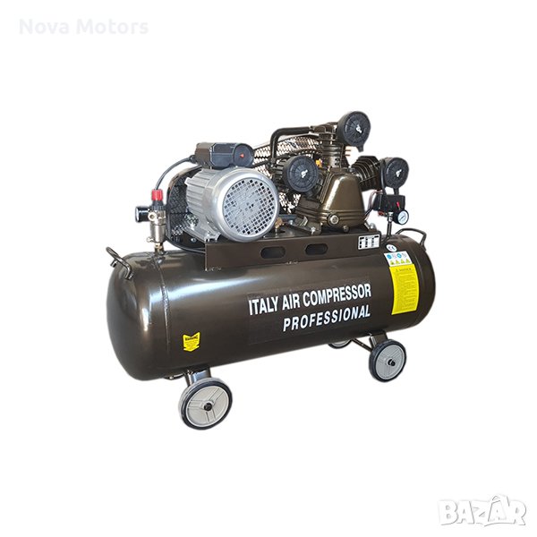 Компресор за въздух с обем на съда 100 литра, 3 глави и мощност от 4 Нр - 3kW - професионална версия с подобрена работа на електромотора и нов модел пресостат.