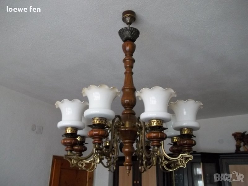 Полилей абажур CHANDELIER орех и бронз дърво метал ! Старинен античен антикварен ! → Обява 39377537
