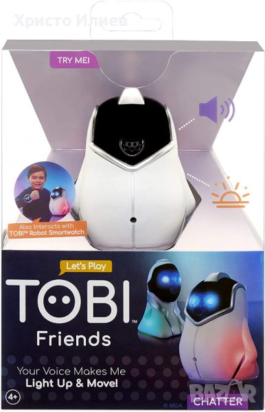 Tobi Friends имат игрива, интерактивна личност и разговарят на своя специален език., когато има два робота един до друг.