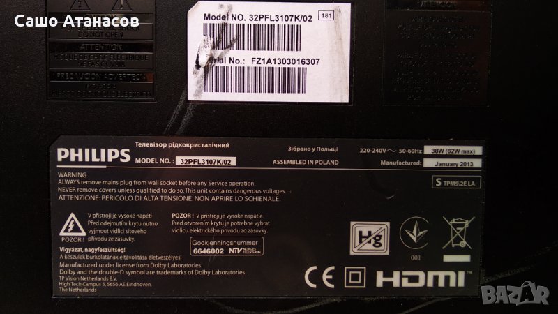 PHILIPS 32PFL3107K/02 със счупена матрица ( LTA320AP33 )