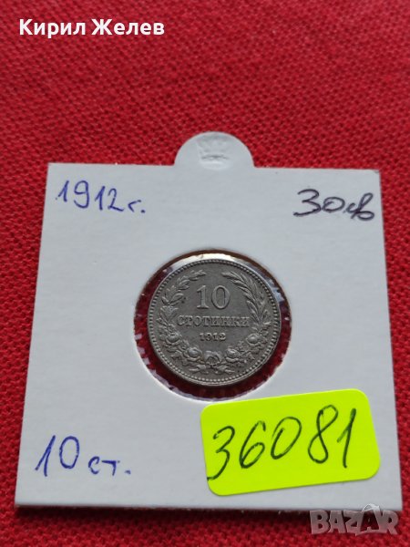 МОНЕТА 10 стотинки 1912г. ЦАРСТВО БЪЛГАРИЯ УНИКАТ ПЕРФЕКТНО СЪСТОЯНИЕ ЗА КОЛЕКЦИОНЕРИ 36081
