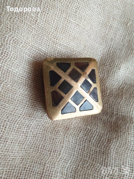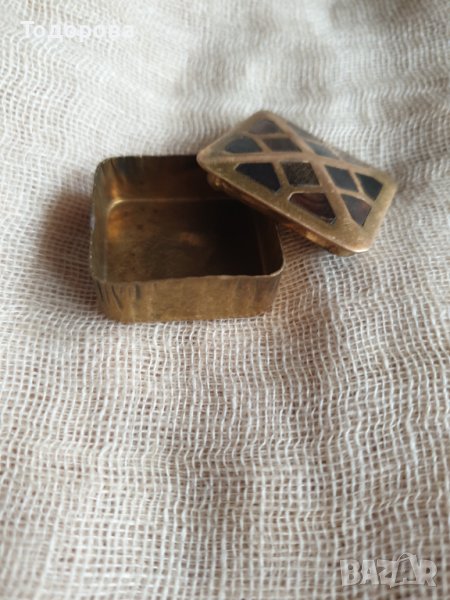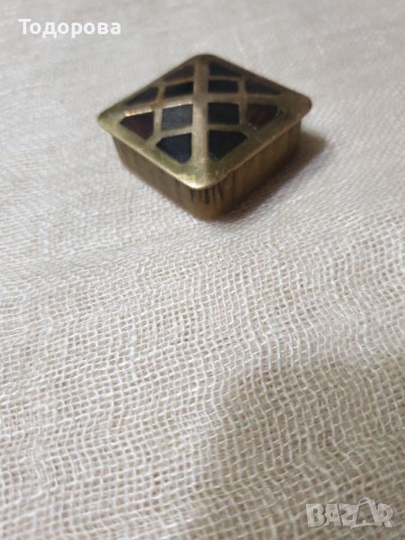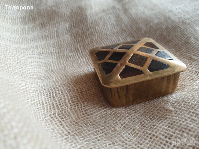 Малка месингова кутийка с апликарани плочки от рогова кост → Обява 39382377