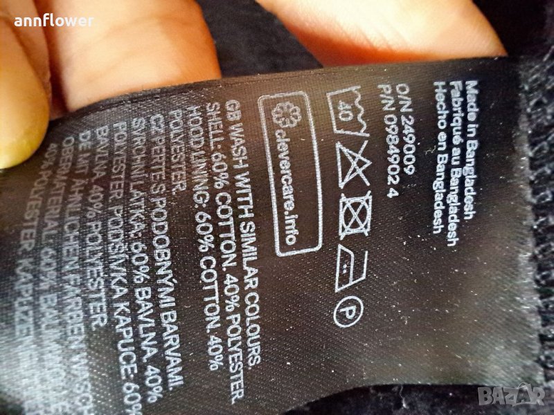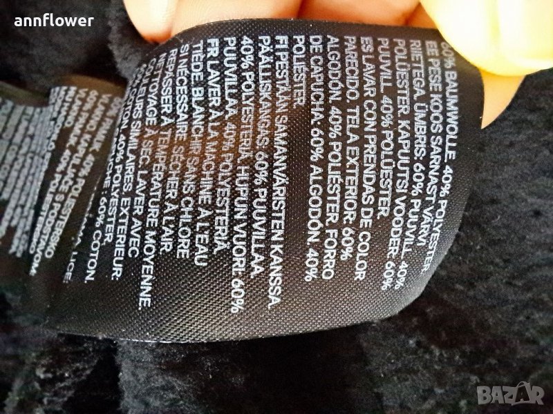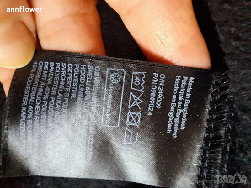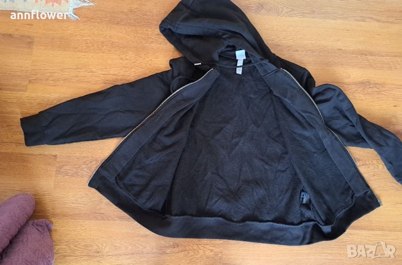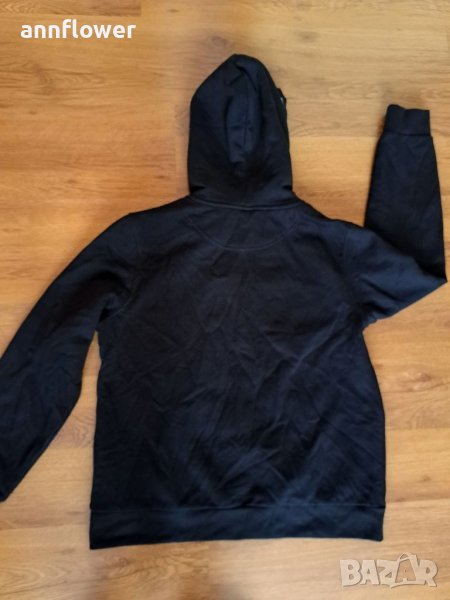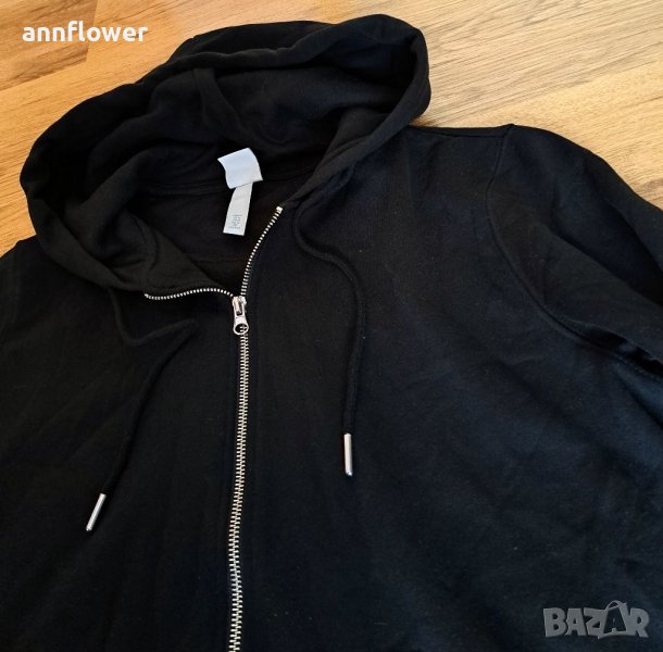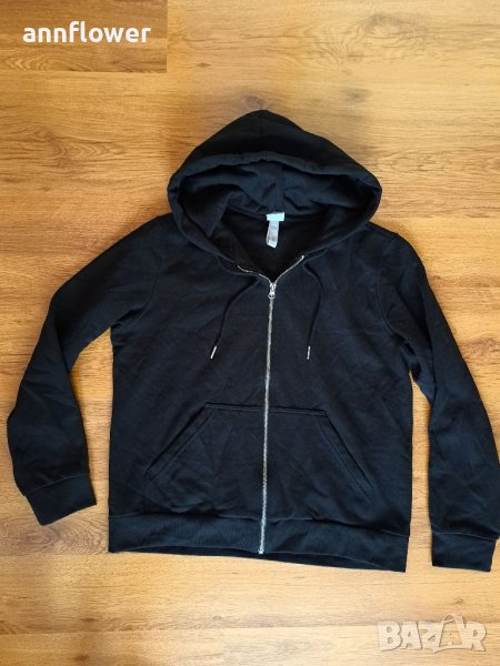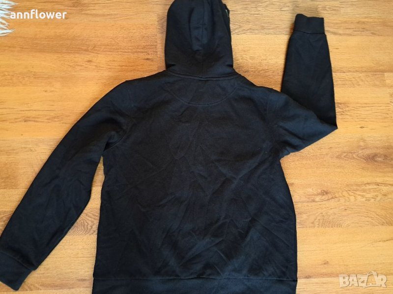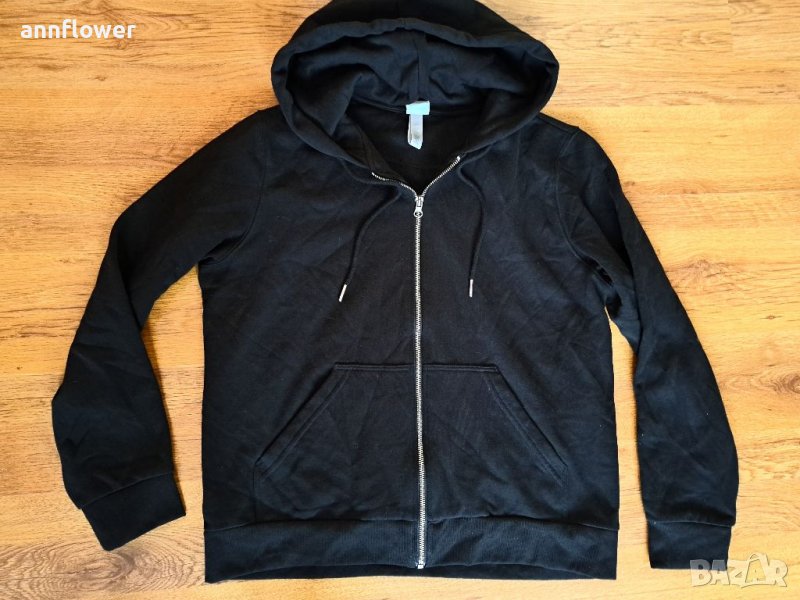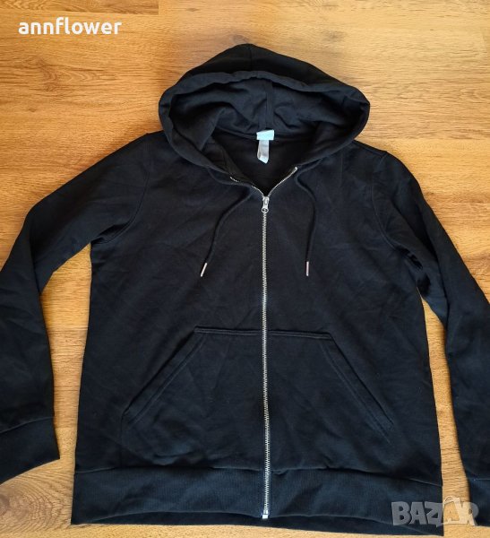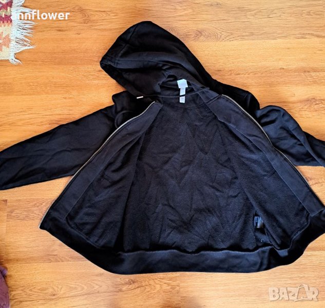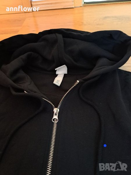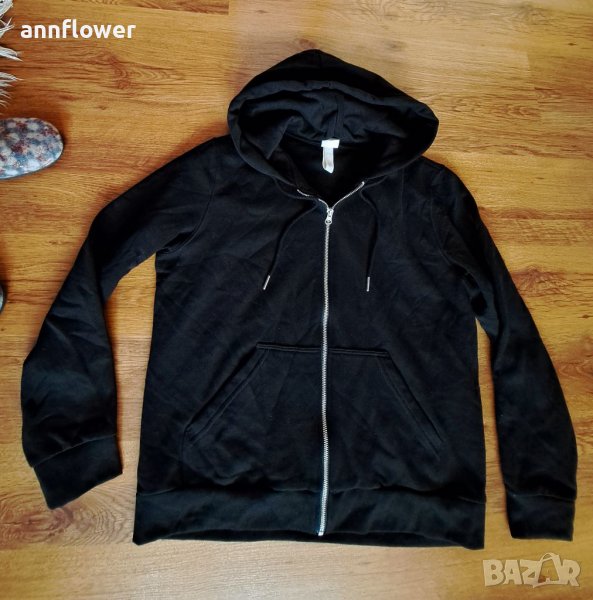Суичера е нов но няма етикет защото е изпран. Цвят черен. Размер М. Дължина 60см, ширина на рамената 43см, ширина в мишниците едностранно измерена 57см. Дължина на ръкава от рамото 60см.