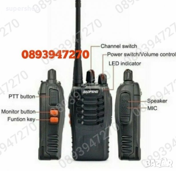 Имам налични и други модели радиостанции. При интерес и за повече информация се обадете на посочения номер. Комплект от 2бр. радиостанции Baofeng BF-888S с обхват до 5км. Независимо дали сте на лов, риболов, за охрана с този уред ще имате винаги връзка. Поддържа високи честоти с 16 канала, които се сменят посредством копчето до антената. За допълнителна помощ радиостанцията е оборудвана с фенерче. Компактните размери я правят удобна за носене дори в джоб. Диапазона на честотите е от 400 до 470mHz и благодарение на това лесно се преодоляват препядствия като стени, гористи местности и различни терени. Радиостанциите са изработени от здрава пластмаса, която предпазва вътрешността от удари, вода и замърсяване, Техническа характеристики: Обхват: 400-470 mHz; Изходяща мощност: 5W; Брой канали: 16; Обхват: до 6км; Фенер с два режима на работа; Светлинен индикатор за сигнал Акумулаторна батерия: 1500 mAh; Режим на работа: 6-8 часа; Температурен диапазон: -30 до +60 градуса; Комплекта съдържа: 2бр. радиостанции Baofeng BF-888S; 2бр. зарядни устройства; 2бр. слушалки; 2бр. щипки. * Всички продукти, които предлагаме са чисто нови, с много добро качество и на конкурентни цени. При закупуването на повече от 1 артикул получавате отстъпка. Доставката е с куриерска фирма Еконт, с опциите- тест, преглед и наложен платеж. За поръчки и информация се обадете на посочения номер или напишете съобщение през приложението * Разгледайте всички мои обяви от менюто по-долу- * ВСИЧКИ ОБЯВИ НА ТОЗИ ПОТРЕБИТЕЛ * * Тагове: радио станция, радиостанция, радио станциа, радиостанциа, радио станции, радиостанции, радио станций, радиостанций, уоки токи,radiostancija,radiostancia,radiostancii, комплект радио станции, комплект радиостанции, комплект радио станций, комплект уоки токи, комплект безжична станция, комплект безжични станции,woki toki,baofeng, баофенг,BF-S888, баофинг,kъмпинг, лов, охрана, честота, двубандова, двулентова, обхват, канали.