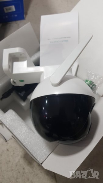 Комплекта включва: PTZ /въртяща камера/, захранващ адаптер 12v, 2a, крепежни елементи, видео инструкции на български за инсталация и настройка през телефон и компютър.
