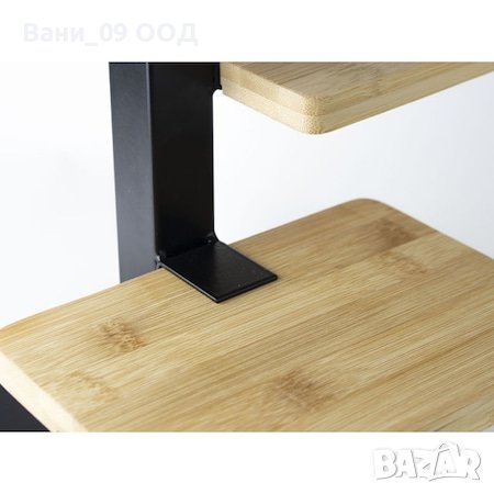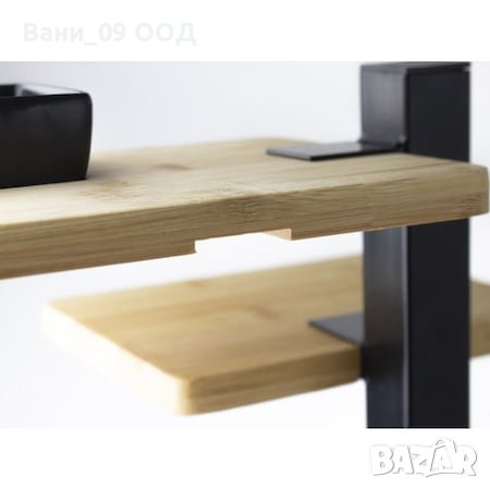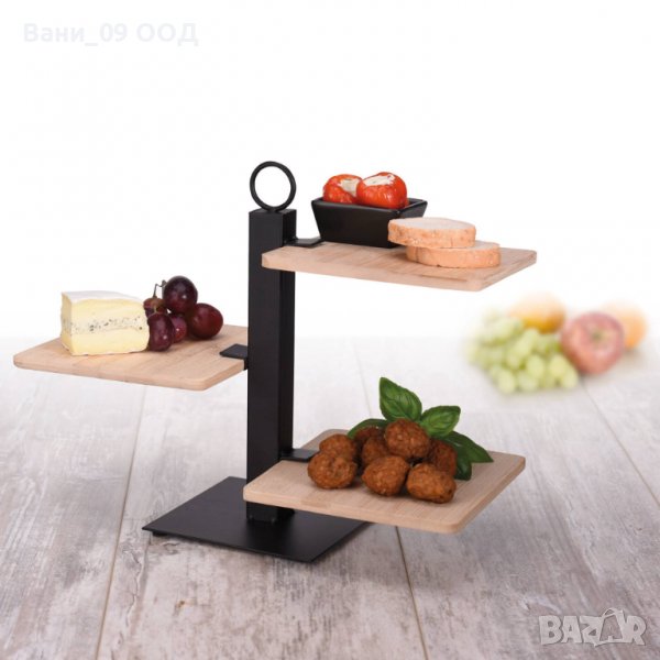Бамбуково плато на три квадратни нива за сервиране с черна метална стойка и купичка, 20/13/13 см