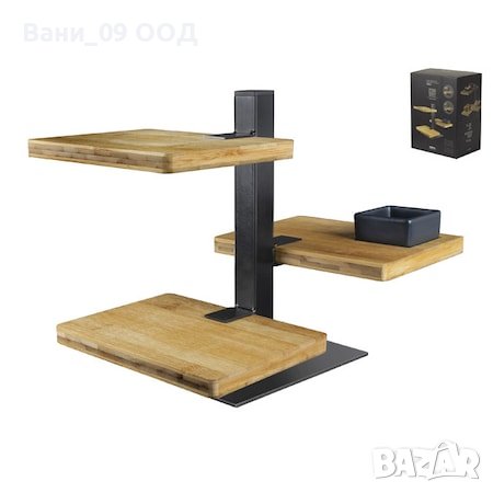 Ще харесате това плато, което съчетава черно с дървесно и оформя интересна композиция при сервиране. Дизайнът е не просто удобен и практичен, но прибавя очарование и необичайна визия, която привлича вниманието. Използвайте го с богата фантазия за поднасяне на изискани сирена и плодове, деликатеси, брускети и всичко друго, което ви хрумне.