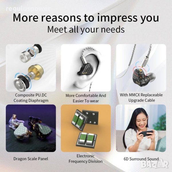 Кабелни IEM слушалки, Hi-res, BGVP Scale с двойни динамични