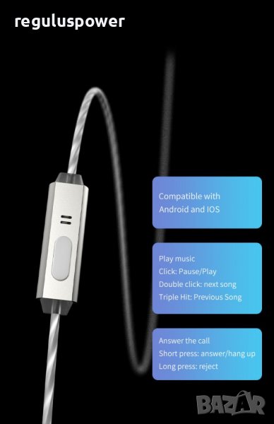 драйвери, OFC кабел с MMCX конектор – 3,5 мм жак.
