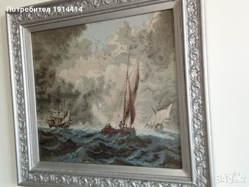 Гоблен "Развълнуваното езеро" Вилер, рамкиран с красива рамка, прецизно ушит, 1600 лв.