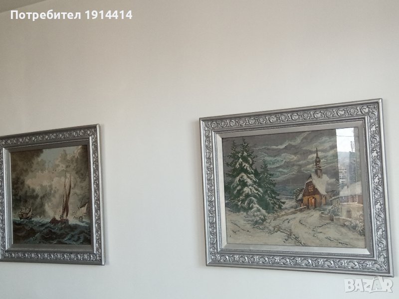 Гоблен "Зима параклис" Вилер, рамкиран с красива рамка, прецизно ушит, 1600 лв.