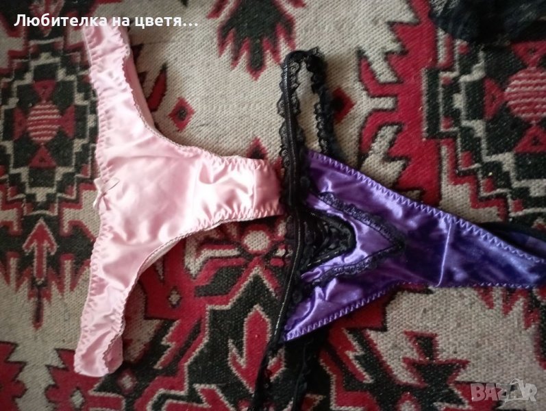 Всички бикини и прашки са от сатен и дантела,размер Л - Хл, фигуралния чорапогащник е универсален размер, имам черни стягащи чорапогащници също размер Л, силиконови чорапи Л размер,бюстиета ,сутиени имам от 75Б до 80,85 Б. Цена 12 лв за брой. Могат да са носени на 25 лв за брой.