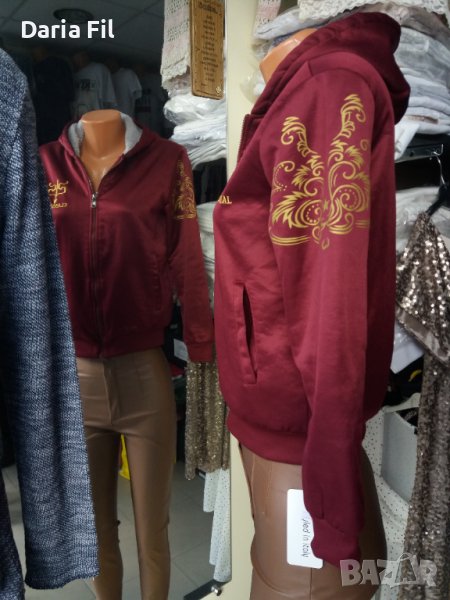 -19% Дамско плътно яке в тъмночервен цвят с жълти шарки по ръкавите → Обява 39390512