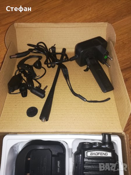 Радиостанция Баофенг Baofeng - UV82, чисто нова, перфектна, с възможност за допълнителна малка антена, с която работи много добре и не пречи за закачане по джобовете, малката антена се продава отделно на цена от 10лв/5,11eur/бр. Цената на окомплектованата радиостанция е 70лв/35,79eur/бр.