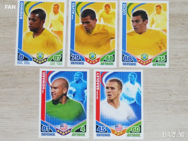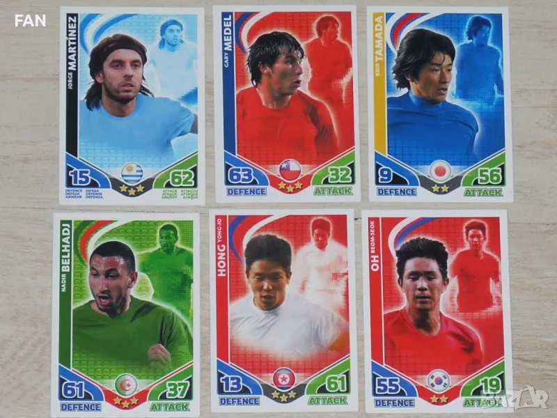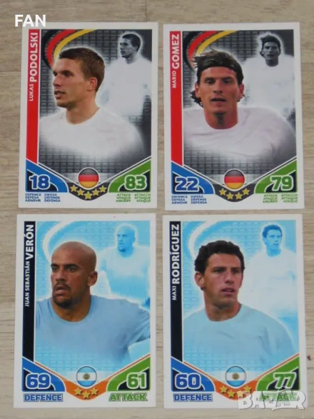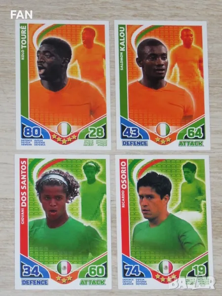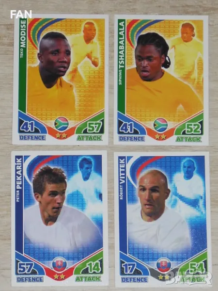 футболни карти Мач Атакс /MATCH ATTAX/ от Световното първенство по футбол в ЮАР през 2010 с марка TOPPS. Те са на следните футболисти: