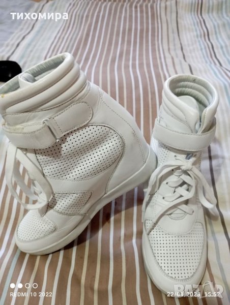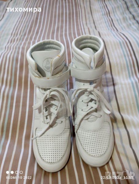 Боти с платформа на Armani jeans номер 39 стелка 25 кожа и дупчеста част височина 30ст от подметката,снимала съм проблемните зони има следи от употреба