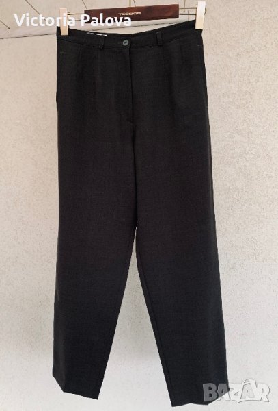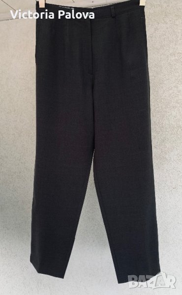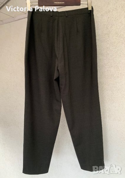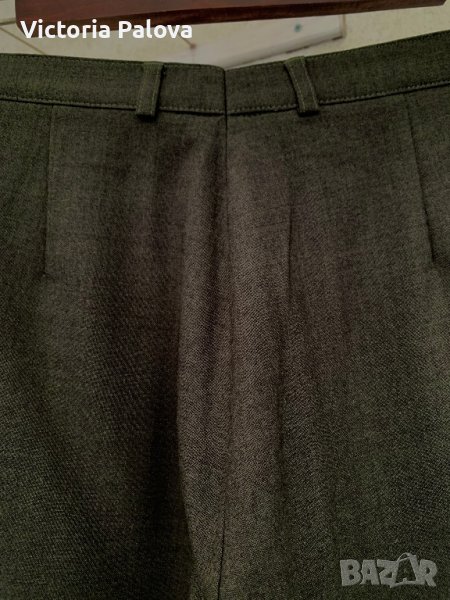 Тъмно сиво-зелен панталон,тънък,има еластан,с малки цепки долу на крачола,два джоба,гайки за тънък колан.талия-42см,ханш-60см,дължина-98см,отвътре крачол-70см,широк горе-36см,долу-18см.дълбочина 43см.панталонът може да се ползва и като окъсен(7/8),кройката и цепките на крачола го позволяват.