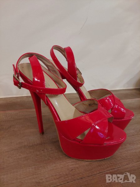 Продавам елегантни червени лачени сандали на висок ток. Номер 35, дължина на стелката - 22 см. Обувани са само веднъж и нямат забележки. Височина на платформата - 4 см, височина на тока - 14 см.