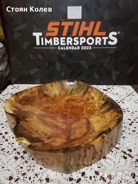 Купа от бреза, диаметър около 30 см, дебелина 7 см. Обработена със препарат против дървояди и е лакирана. Продава се само купата, без декорация във нея.