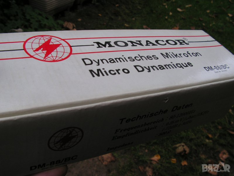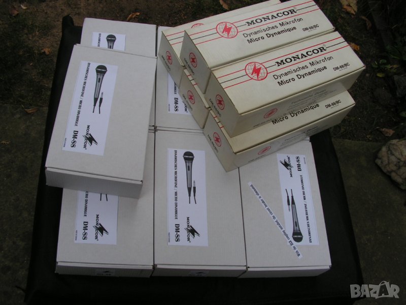 Предлагам един бюджетен, универсален микрофон, произведен м Тайван в завод на MONACOR, което го прави напълно оригинален. Повече от един са. Микрофоните са нови и употребявани, съответно на различни цени. „MONACOR” DM-88 е пригоден доказано за широк кръг източници на звук, като се започне от човешки глас и се стигне до доста успешен овърхед на барабани. Корпусът му е пластмасов, но главата е от метална мрежа с вграден ветробран от акустичен дунапрен. Кабелът е дълъг 3 метра и завършва на малък / 2,5 мм / моно жак. Микрофонът има ключе ( OFF – ON ) за прекъсване на сигнала / окъсяване /. Всеки комплект съдържа: кутия, държач, микрофон с кабел и заводска дипляна. Ползваните микрофони са изключително добро състояние и трябва да търсиш предубедено, за да намериш някакаква забележка по боята. Уредът е с произход Австрия, като е преминал сервизиране, честотна проверка и окомплектоване в специализиран сервиз в Берн – Швейцария. Към всеки микрофон подарявам калъф от еко кожа за носене и съхранение, както е написал производителя. Калъфите са малко груби, нови са, и са надеждна защита срещу механични въздействия и влага на микрофон, държача и кабела. Микрофоните са един и същ тип DM-88, с еднаква окомплектовка, но в две групи на различна цена