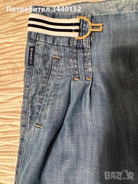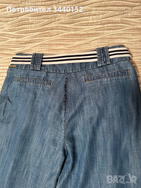 Широк панталон с колан в бяло и синьо, много мека и приятна материя, която придава изключителен комфорт при носене, марка: “Armani”, цвят син. Няма следа от носене!