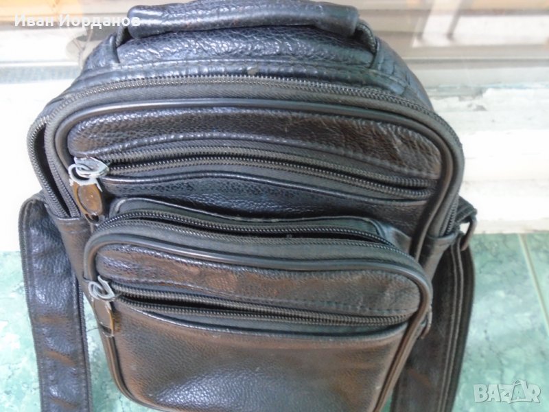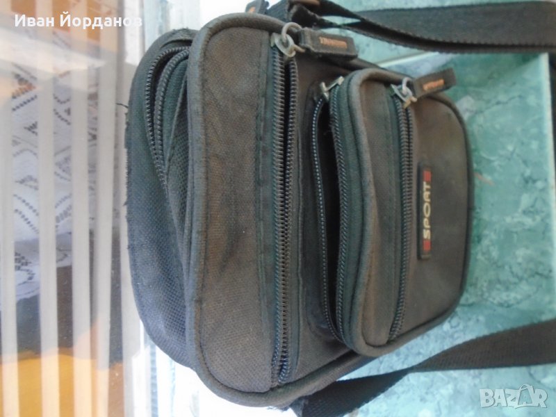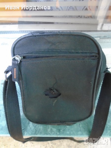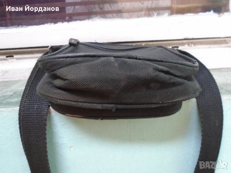 2) По-малка, с размери 17/14/6 см. Общо 5 джоба. Проблемът е, че на предния джоб е счупен ципа, а на най-задния има скъсване.Дръжка само за през рамо, с дължина 90 см., регулируема.