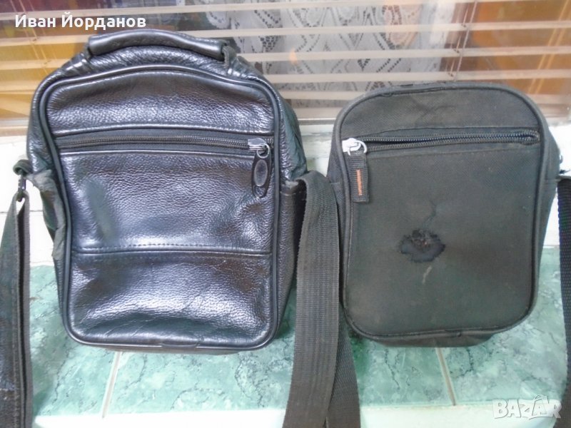 2 бр. мъжки чанти диагоналки, черни на цвят. Здрави и с нормални следи от употреба. Имат недостатъци, поради което и са по-подходящи за работни. Голяма и малка, както следва: