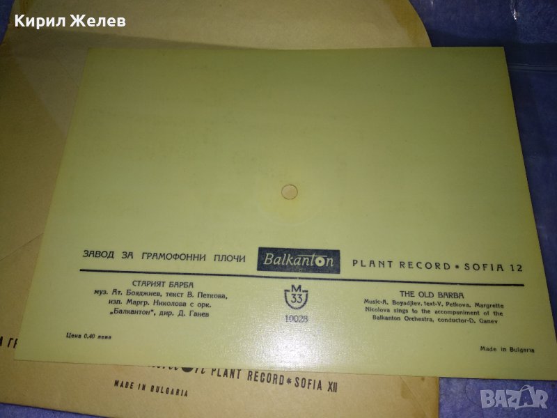 ФОНО - КАРТИЧКА на БАЛКАНТОН с ПЛИК Стара ПОЩЕНСКА КАРТИЧКА - ГРАМОФОННА ПЛОЧА СТАРИЯТ БАРБА 35480