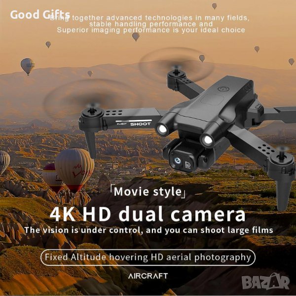 - Със сгъваеми рамена, малък размер, лесен за носене. Превключвател с двойна камера. С функция за задържане на височината, осигуряваща стабилен полет. С wifi функция може да се свърже с приложението, APK система за правене на снимки, видео, предаване в реално време чрез изображението на камерата на телефона.