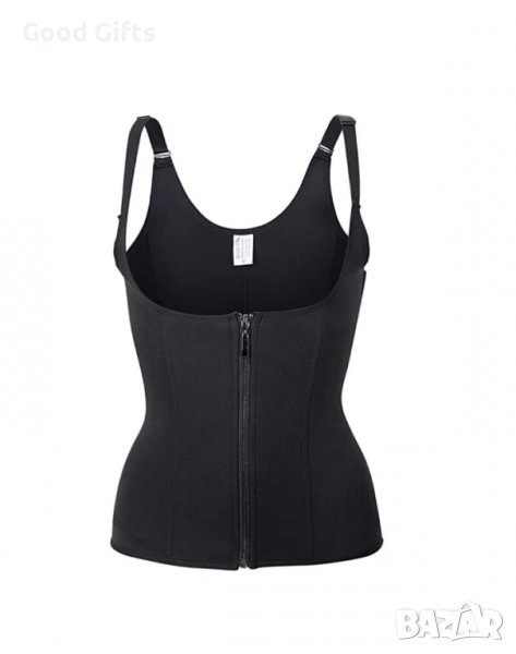 Стимулира кръвообращението и затопля проблемни области. Има силен сауна ефект. Пристяга, оформя и намалява талията. Подпомага болките в гърба и кръста. Скрива несъвършенствата, повдига бюста. Въздейства в зони, където се натрупват мазнини. Закопчаване посредством три редови клипс /за регулиране на пристягането/ и цип. Регулируеми презрамки.