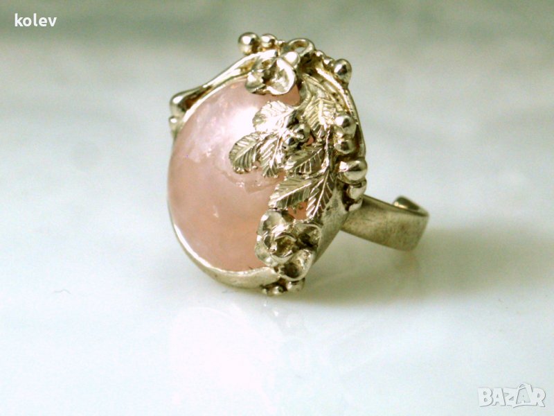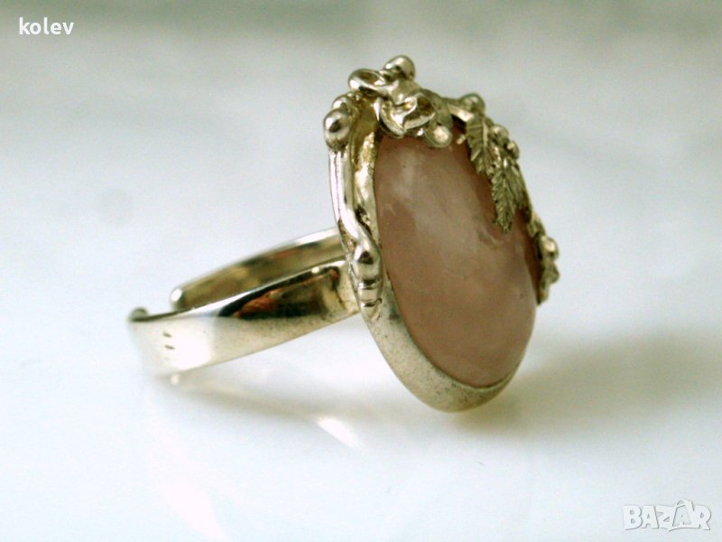 сребърен пръстен с розов кварц - ръчна изработка, бутиков модел