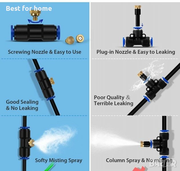 Разнообразие от приложения: Системата за пръскане има множество приложения за градина или вътрешен двор, градински пръскачки, оранжерия, къщичка за кучета, сенник,