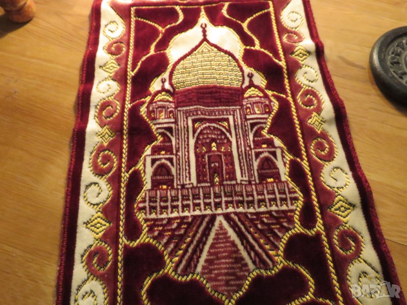 Старинно турско малко килимче, ковьор за стена с турска джамия и полумесец