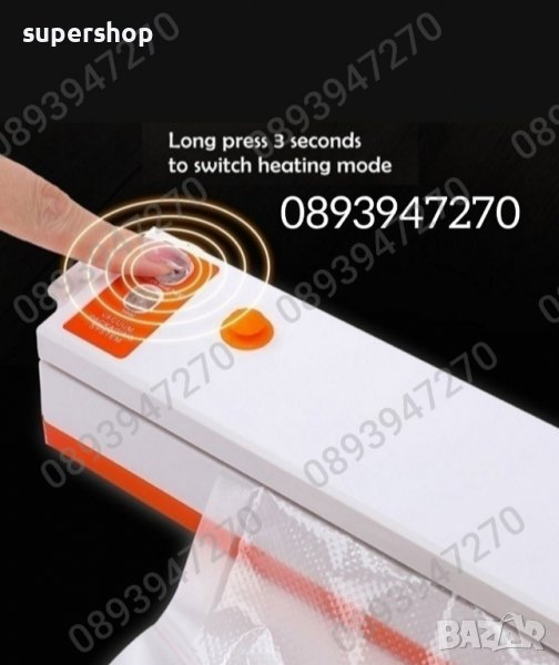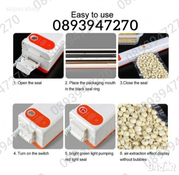 Създаденасъс специална технология, която изсмуква въздуха от пространството край желания продукт, уредът е изключително лесен за употреба. Поставяте продуктите в найлон, притискате с устройството и натискате бутона за включване, въздухът край продуктите изчезва и всичко е херметическо затворено. Без опасност от овлажняване и бързо разваляне на продуктите, без смесване на миризми и компактно съхранение в хладилника.