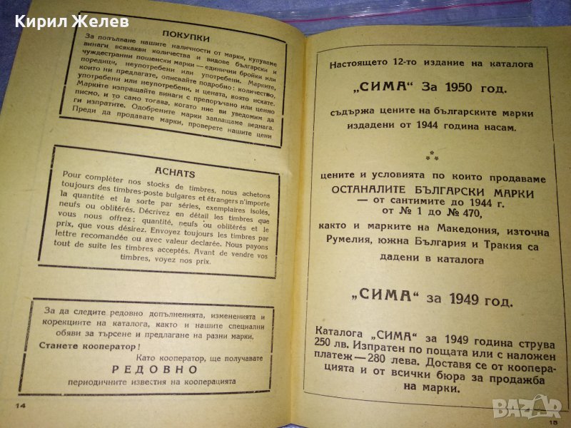СИМА КАТАЛОГ за ПОЩЕНСКИ МАРКИ 1950г МАРКОЛЮБИТЕЛСКА КООПЕРАЦИЯ СЕРДИКА СОФИЯ РЯДЪК 35489